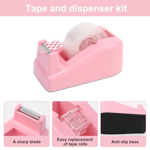 - Desk set: our pink desk accessory set, suitable for children, contains 1 x stapler, 1 x Tesafilm dispenser, 1000 x staples, 1 x stapler, 1 x hole punch, 1 x scissors, 10 x push pins, 3 x foldback clips, 40 x paper clips, 1 x eraser, 1 x tape, 1 x adhesive tape. 1 x Tabs sticker, 1 x pencil sharpener, 1 x 15 cm ruler.
