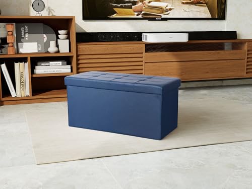- Large Foldable Ottoman 2 Seater Faux Leather Storage Box