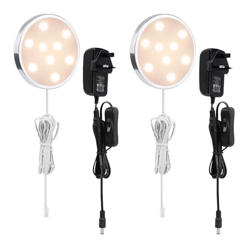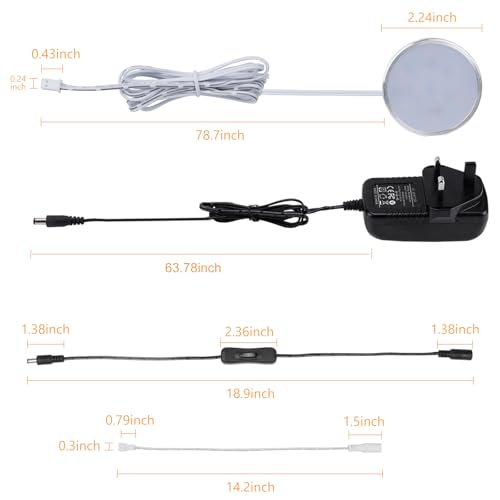- Plug and Play – Plug in UK power adapter + DC12V LED puck light, totally plug-and-play.No batteries required.The puck lights are more convenient to use without recharge or change the batteries frequently. And you don’t have to worry about the light would be dim with the inadequate power.