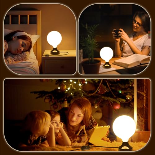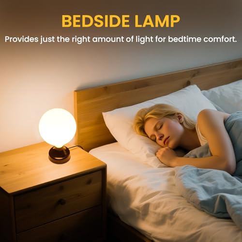 - Sleek Design: Elevate your space with this sleek vintage E27 table lamp paired with a soft 7W E27 G125 opal bulb, designed to cast a warm, inviting glow in all directions. With 360-degree illumination, a cozy 3000K color temperature, and 363 lumens of brightness, this retro bedside lamps delivers perfect ambient lighting—ideal for reading, relaxing, or adding a touch of warmth to any room