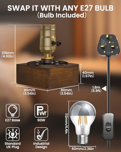 - Plug-n-Play:1.8 m UK 3-pin plug + in-line on/off switch—no tools, no electrician. Ready to shine the moment you open the box. (The LED bulb is non-dimmable; do not use it with any dimmer switches)