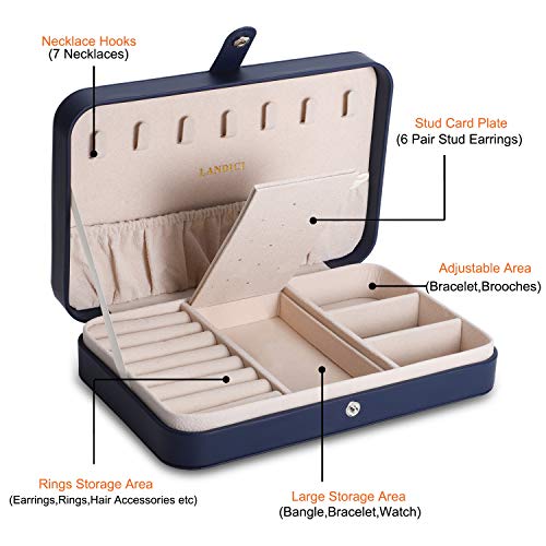 - 【Travel Jewelry Boxes】Dimensions:8.26(L)x5.5(W)x1.7(H) inch. Lightweight and portable, and the hard exterior keeps your pieces protected. This jewellery box is not only suitable for home storage, but also ideal for travel and business travel.