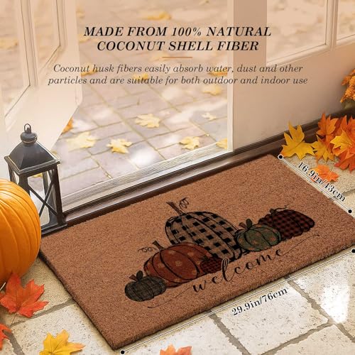 - Heavy Duty Dirt Defense: Built with non-shedding coco coir, this 17"x30"/ 76 x 43 cm welcome door mat aggressively scrapes mud, traps debris, cleaning shoes and blocks moisture—keeping dirt outside and floors spotless. Ideal for rainy fall days