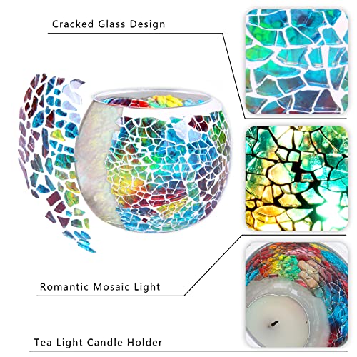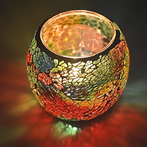 - 【Handmade Works of Art】-This beautiful candle holder is made of hundreds of small colorful glass fragments glued on a glass bowl,All the textures were handmade, light a candle to create a wonderful light full of warm atmosphere