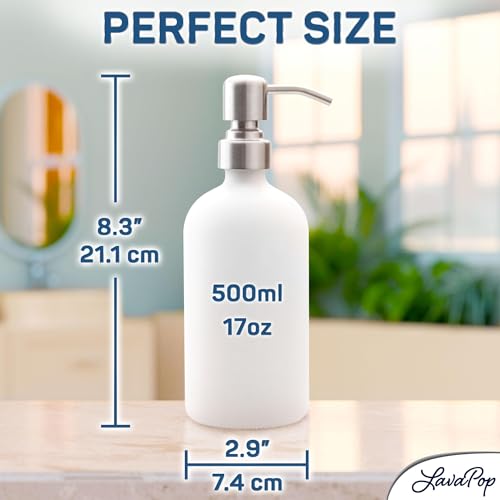 - EXTRA-LARGE CAPACITY – Tired of constantly refilling your soap or lotion dispenser? The dispenser offers an extra-large capacity of 17 oz; This means you can enjoy your favorite products for longer periods, reducing the hassle of frequent refills