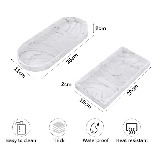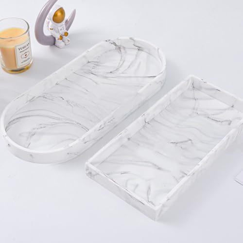 - Size: Rectangle Tray: 7.87 x 3.93 x 0.78 (20 x 10 x 2 cm); Oval Tray: 9.84 x 4.33 x 0.78 (25 x 11 x 2cm), which is big enough to hold your items without taking up too much space on your dresser. Irregular marble texture looks elegant and modern.