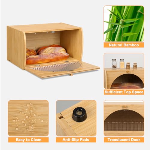 - Nature & Elegant: Store and display your bread and pastries inside this sturdy bamboo wood kitchen countertop bread holder; its chic style will add to the rustic decor.