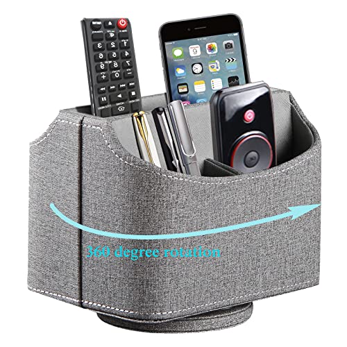 - SUITABLE DESIGN: our remote control storage comes with an easy-to-spin 360° rotating base, providing you easy access to put or take items, whether you place it on the couch, armchair,table, or anywhere around your house , The 5 compartment desk organizer can be used to store remote controls, office supplies, media accessories, small electronic devices and more
