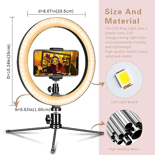 - 【Package Included】The product package includes a 10” ring light, a tripod stand, a hot shoe mount, a metal ball mount, a phone clip