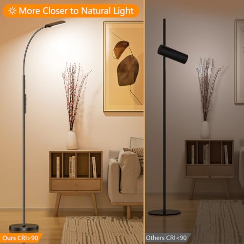 - Eye-Caring with CRI >90 – Featuring a high Color Rendering Index (CRI >90), this reading floor lamp ensures true color reproduction and reduces distortion. It provides soft, flicker-free lighting, perfect for floor reading lamps for living room or as a bedroom floor lamp for reading, studying, and working.