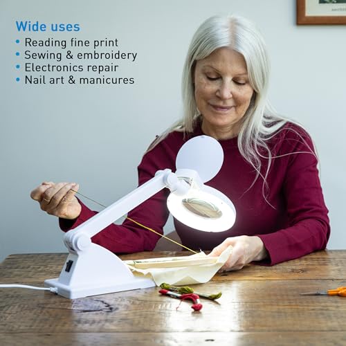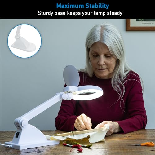 - See your projects clearly and comfortably: With a 3.5" diameter magnifying lens that offers 1.75X magnification (plus an inset lens at 4X), this magnifying desk lamp helps you spot fine details easily. This makes it perfect for crafts, sewing, model building, or reading small print.