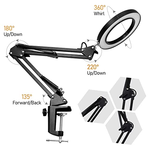- 【Professional Eye Protection and Widely Application】:This magnifying lamp is close to daylight illumination and emitt soft light. Special designed for anyone with vision problems. perfect for drawing, reading, arts & crafts, sewing, needlework, beading, electronic repair, working, studying and other hobbies.