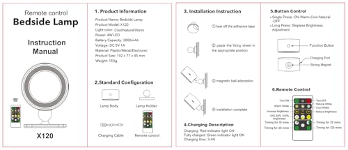 - 3 Color Temperature & Dimmable Wall Sconces — Button control and remote control both can switch the color temperature(3000K-4500K-6000K). Also two ways for dimming this magnetic wall lights. Button control: Stepless(Long press). Remote control: ①stepless(Button”+”&”-”); ②4 levels: 10%,40%,80%,100%. You can choose the color temperature and the brightness based on different usage scenarios.