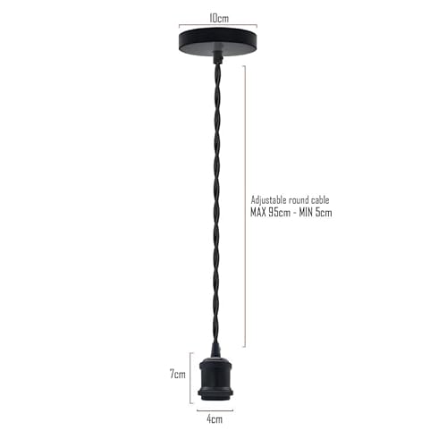 - Dimension: The lamp holder is 7cm high and 5cm wide with a 4cm open hole for easy bulb fitting. Ceiling rose is 10cm wide, and includes a 95cm adjustable twisted cable for flexible hanging.