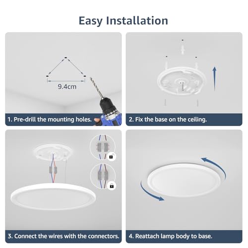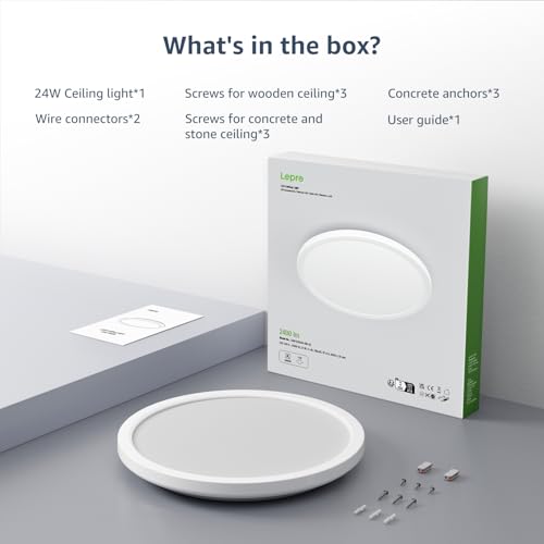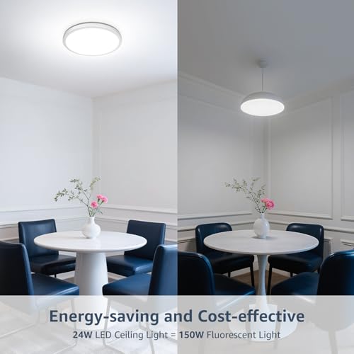 - Energy Saving & Super Bright: This 24W ceiling light can replace a 150W incandescent bulb, which can effectively save energy and electricity cost. The high brightness of 2400lm can illuminate a room of 16-20㎡/ 172-215 sqft, making your home brighter.