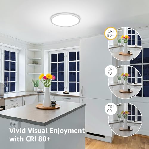 - Eye-friendly Light: The flush ceiling light delivers clear, natural, and even illumination without flicker, glare, radiation, or harsh light, ensuring safe and comfortable lighting. With a high Color Rendering Index (CRI) of 80+, it guarantees a true and vivid lighting experience and eye-friendly protection.