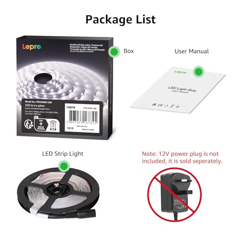 - 【Versatile & Easy to Hide】- This 5M daylight white LED strip is 8mm width, very slim and best used in hidden areas to create ambient lighting – under kitchen units, in the wardrobes, in the cargo bay of van, behind TV or bed, around mirror, ceiling, wall, door, desk, stair, or anywhere you like.