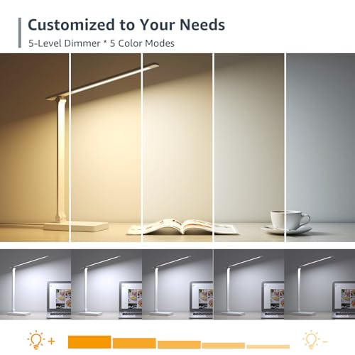Lepro Desk Lamp, LED Desk Lamp with Power Adapter, 9.2W 800lm, Dimmable Desk Lamps Office, 5 Brightness Levels x 5 Colour Modes, Touch Control Daylight Lamp for Office, Study, Bedroom, Nails, Reading