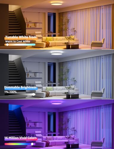- [LightBeats Music Sync] – With LightBeats algorithms and a highly sensitive sound pickup, the color changing ceiling light can seamlessly dance to the beats of your favorite songs, creating a dynamic atmosphere suitable for parties and holidays.