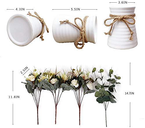 - Package : Pack of 3 artificial rose bouquets ,1 silver dollar eucalyptus and 1 ceramics vase.