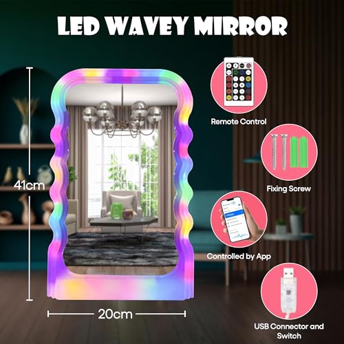 - Modern LED Wave Mirror With Remote: This rectangular LED mirror features a stylish wave design with integrated mirror lights, ideal for any room in the home including bedrooms, hallways, and living spaces.