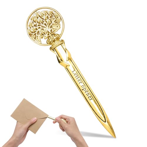 - Elegant Retro Design: Adorned with a classic tree-of-life pattern and finished in a luxurious gold tone, this envelope opener exudes timeless elegance. Its intricate design adds a vintage charm to your workspace, serving as both a functional tool and a decorative piece that complements any office or desk setup.