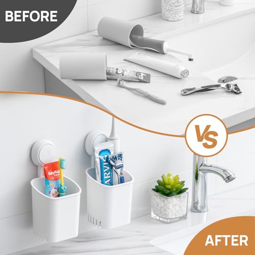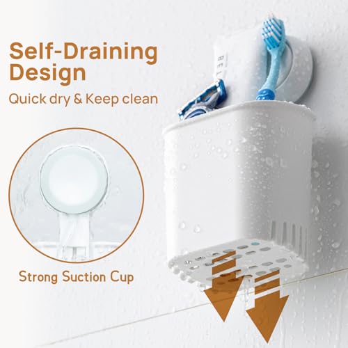 - Patented powerful suction: TPE Suction Cup with bionic design of octopus tentacles and premium thickened ABS plastic which both have superior suction and durability. It is water-proof, oil-proof and moisture proof. The toothbrush holder for bathroom can hold up to 6.6 LBS / 3 KG and stick sturdy for years after installation