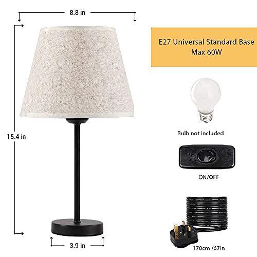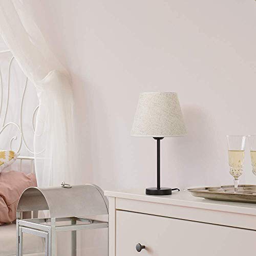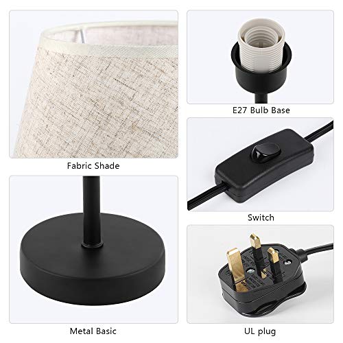 - QUALITY: LIANTRAL set of 2 bedside lamps is constructed of linen fabric shade and black finish metal lamp bases, has durable quality and modern simple design looking. The power cord has a convenient button switch function.
