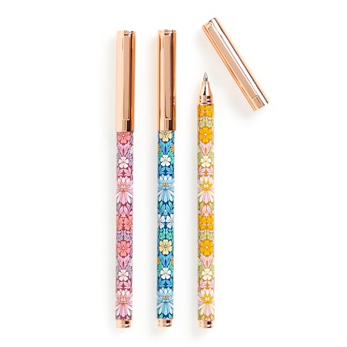 - Elegant design features stunning Liberty London floral art on metal barrels complemented by metallic gold caps