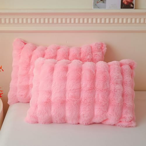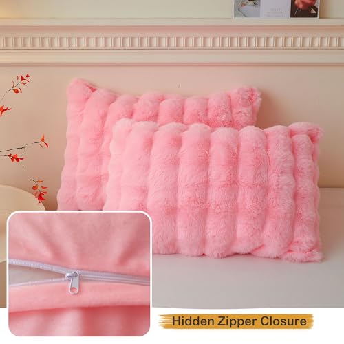 - Buttery Soft Materials: Enjoy cloud-like softness with our fuzzy pillow cases, crafted from high-quality fluffy synthetic rabbit fur—cozy and warm to the touch. The reverse features ultra-soft velvet for added luxury—perfect for snuggling up on cold nights or adding warmth to your couch. Certified by OEKO-TEX, it guarantees hypoallergenic and skin-friendly properties, making it safe for kids and sensitive skin. Resistant to shedding and fading, it stays vibrant and plush with daily use.