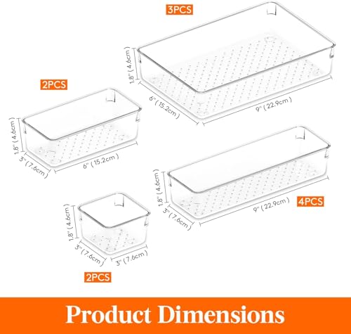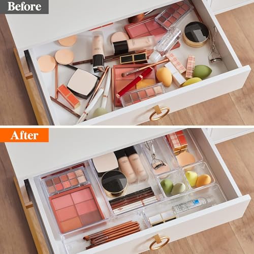 - Crystal Clear: The material is as clear and transparent as stunning crystal. These plastic drawer organisers light up your drawers and make space for neat organization. The transparent design lets you quickly find what you need when you need it.