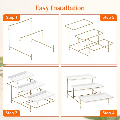 • Save Space: The 3 tiered serving tray features a 3-tier design that maximizes vertical space, adding elevation to your food display. It efficiently utilizes limited table space while presenting the food in an organized and appealing manner. When not in use, the trays can be stacked for easy storage.