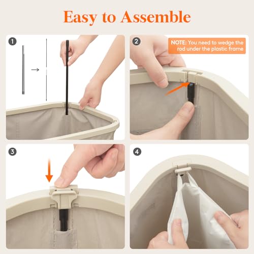 - Robust & Stable: Constructed from premium tear-resistant fabric, this dirty clothes hamper includes a plastic frame and four support rods for enhanced stability, supporting up to 16 kg/35 lbs without collapsing or deforming over time