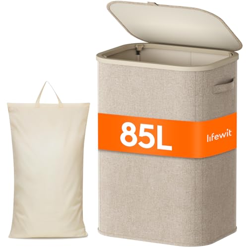 - Large Capacity: Measuring 16.9" x 13" x 23.6" (43x33x60cm) with an 85L volume, this laundry hamper with lid easily stores 2-3 loads or a week's clothing, taking up minimal space