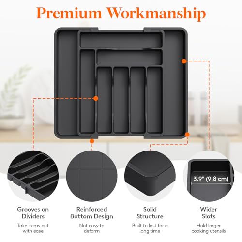 - Robust and Safe: This kitchen drawer organizer is crafted from premium PP material, BPA-free and built to last. It ensures your silverware is stored in a healthy, safe environment for worry-free use