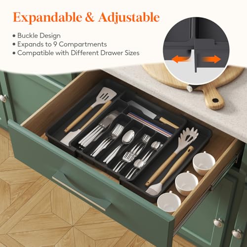 - Sort Your Silverware: The silverware tray comes with 7-9 compartments, creating more space in drawers for spoons, cutlery, and flatware. Streamline your cooking with a no-install organizer that keeps cutlery at your fingertips