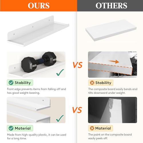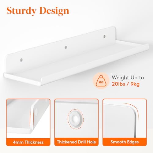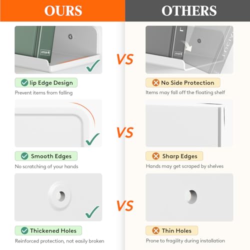- Sturdy Design: Wall shelves can be securely installed to the wall using expansion screws. It is capable of withstanding a weight of up to 20 pounds(9kg), ensuring durability and preventing easy breakage. It features lip designs on the front and both sides, effectively preventing your belongings from falling off.
