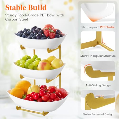 - Space-Saving: The fruit basket for kitchen maximizes vertical space, adding height to your food display while presenting food in an organized and appealing manner; When not in use, the trays can be stacked for easy storage