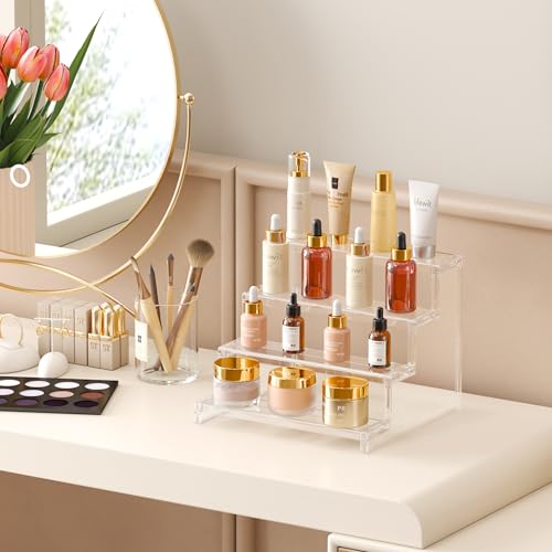 - Multi-purpose: Perfect for storing perfume on a dressing table or displaying figurines in cabinets and on tabletops, this perfume organizer can also be used as a dessert table in parties. Different layer heights can make your figurines, perfume, nail polish or skin care products stand out.