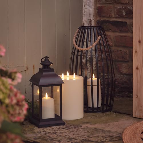 - ELEGANT COUNTRY CHIC DESIGN: The Trentham Battery Lantern features a black-painted plastic frame with an elegant looping handle and glass sides, perfect for adding a touch of understated magic to your home.