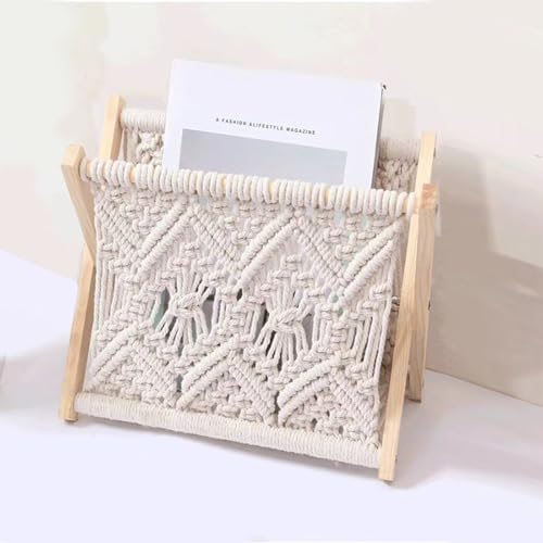 - 2. Unique Bohemian Decor: Add a touch of bohemian charm to your living space with our Magazine Rack, featuring a white woven rope design and natural wood color that will complement any room.