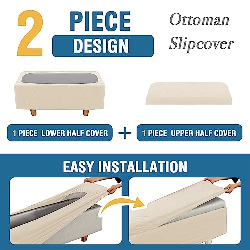 - [PERFECT FIT] – Due to the high elasticity fabric, The slipcovers for ottoman are flexible enough to warp your ottoman in whole tightly without sliding or shifting, perfectly fit your ottoman footstool. Moreover, the thicken elastic band sewn in the hem adopts great sewing technology which is easy to install and take off the ottoman slipcover, more convenient for you to wash the ottoman cover regularly.