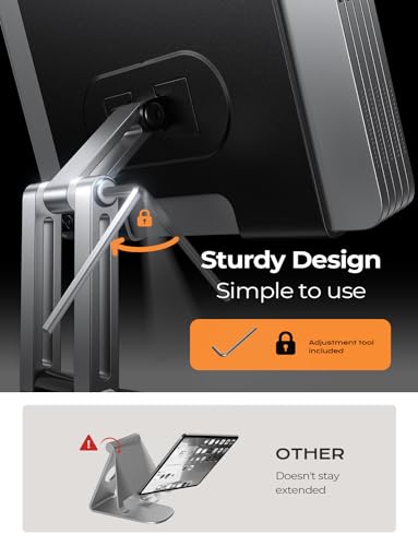 - 2025 All-Metal Fits iPad Stand: Say goodbye to wobble and limitations of first-gen Tablet stands—now fully upgraded with an all-metal construction for top-tier performance. Includes a hex key for precise adjustments, so you can customize a completely reliable workstation