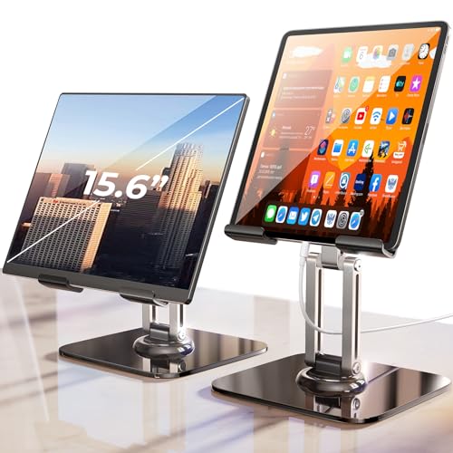 - 360° Free Rotation Design:A two-stage elevated Tablet Holder offers comfortable neck support—perfect for reducing strain. It moves smoothly and precisely into any angle you need, tested 10,000+ times without sticking or obstruction