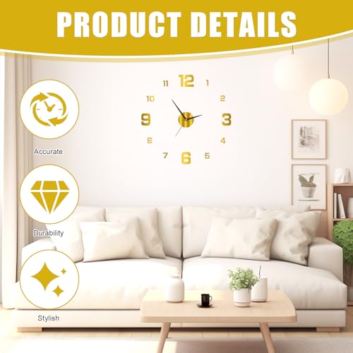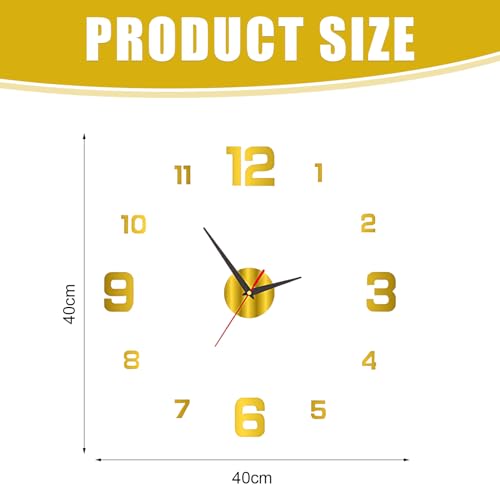 - Multi functional home decoration highlight: Stick on wall clock features a 40cm diameter design that can transform any room. The golden touch of luxury and the borderless simplicity create a sophisticated, modern feel, making 3d wall clock the ideal centerpiece for your living room or office. The frameless wall clock minimalist aesthetic seamlessly enhances both residential and professional spaces.