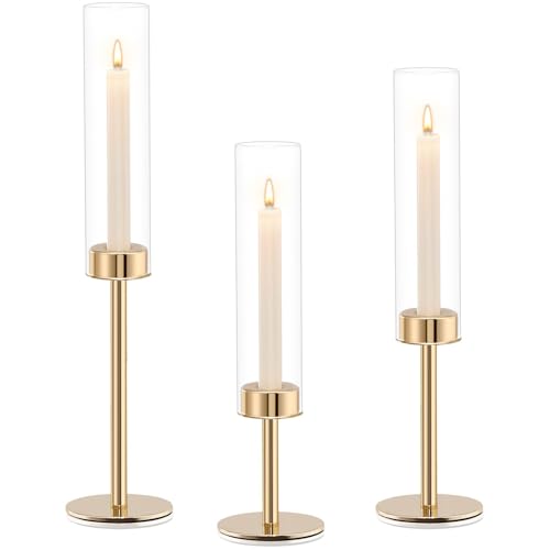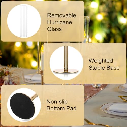 - 【Windproof Elegance, Unwavering Glow】The Hurricane Candle Holder features a sturdy matte gold metal base and crystal-clear tempered glass, shielding candles from wind, rain, or bumps. Ideal for patios, beach weddings, or garden gatherings.