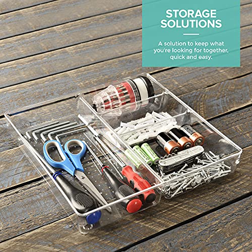 - PURPOSE: The LIVIVO draw organisers eliminate the mess in your drawers and helps neatly organise items such as; makeup, stationary, cosmetics, utensils, cutlery, screws and other various tools. The see-through design helps you discover items without removing everything helping you save time.