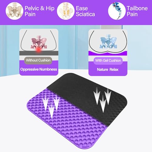 - Adaptive Pressure Relief: High-elasticity gel moulds to your body shape, preventing tailbone pressure and bottom soreness. Unlike memory foam, it rebounds instantly, maintaining consistent support without permanent dents.