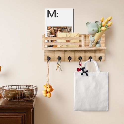 - Durable and long-lasting – This keyring is made from high-quality wood and features sturdy metal hooks, combining practicality with a rustic charm. Six durable hooks securely hold keys, belts, or hats, while the spacious compartment is ideal for storing mail, wallets, and decorative items.