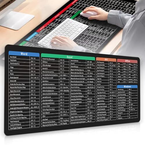 - 【Wide Application】Our big excel shortcuts mouse mat can be used for computer keyboards, laptop keyboards, or as desk mats at home. It is perfect for various applications such as office, gaming, learning, design, and more.